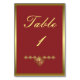 Eleganter Rot-Gold-Hochzeitstisch Tischnummer