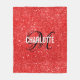 Elegante Monogramm Name Fleece Decke mit einem roten Glitzer Hintergrund. Personalisieren Sie Ihre Daten mit Namen und Monogramm.