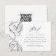 Diese moderne, schwarz-weiße Blumenkorrespondenzkarte beinhaltet einen Platz für Ihren QR-Code, damit Sie auf Ihrer Hochzeitswebsite problemlos uAwg machen können.