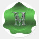 Eleganter grüner Wachs-Siegel-Blickaufkleber mit Grafiken eines verzierten silbernen Tones und grünes Monogramm beschriften M, in der Mitte. Reizende Vollenden-Touch zu den Anlasseinladungen und zu den Grußkartenumschlägen.
