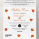 Diese elegante Hochzeit im Herbst lädt zu einer modernen Herbsthochzeit ein. Die schlichte Gestaltung ist mit Blätter aus Ahorn und eleganter Schwarz-Orange-Typografie auf weißem Hintergrund gestaltet.