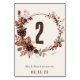 Erdige Herbstblätter in einem rustikalen Kranz mit Blätter, Kiefernzapfen und Zweigen. Große Tischnummer in diesem rustikalen Design. Ideal für eine Hochzeit im Herbst. Das gleiche Design auf beiden Seiten.