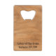 Eleganter Rustikaler Holzkörner Vater der Bride Kreditkarte Flasche Opener Fügen Sie eine persönliche Touch zu Ihrer Hochzeit mit dem personalisierten Vater der Braut Kreditkarte Flasche öffner. Dieser Flaschenöffner bietet personalisierten Titel und Hochzeitstag in Schwarz auf einem rustikalen Holzkornimitat-Hintergrund, im klassischen Serifenstil Schriftart. Auch perfekt für Trauzeuge, Brautvater, Ringträger und mehr.