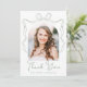 Zeigen Sie Ihre Wertschätzung mit diesem eleganten Abschluss Dankeschön-Karte mit dem Foto des Absolventen in einem bezaubernden Bogen Rahmen. Ein von Hand gezeichnet, grüner Bogen und ein Farbband betonen den weißen Hintergrund, während "Danke" in einem skurrilen Weisheitsgrün-Skript dargestellt wird, wobei der Name des Absolventen elegant unten platziert wird. Die Rückseite der Karte trägt das ausgeklügelte Design nach vorn mit einem zartem Salbei-grünen Bogen oben und Platz für eine personalisierte Danksagung. Diese Karte ist perfekt für Absolventen der Oberschule und der Uni und ist ein herzliches Dankeschön an Freunde und Familie!