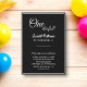 Dieses elegante Schwarz-Weiß-Angebot zum Geburtstag lädt zu einem modernen Geburtstag ein. Das schlichte Design mit eleganter weißer Kalligraphie auf schwarzem Hintergrund.