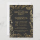 Elegantes, modernes und schicker Imitat mit gelbem Gold und trendigem schwarzen Blumenmuster, Einladungen zur Graduiertenparty. Dieses klassische und anspruchsvolle Design ist perfekt für den anspruchsvollen, stilvollen und trendigen Absolventen. Personalisieren Sie mit Ihrer eigenen Nachricht auf der Vorderseite und einem angepassten Monogramm Initial auf der Rückseite. Das gesamte Foto-Druckdesign.