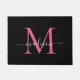 Eleganter schwarzer Magenta Hot Pink, benutzerdefinierter Monogramm-Skriptname Doormat