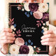 Dieses raffinierte Design zeigt eine atemberaubende Blumenstruktur mit reichhaltigem Pflaumenrot, Blüten, Creme und Marineblünen, gerahmt durch zartes Blattwerk auf einem schwarzen Hintergrund. Der personalisierte Name und das Jahr fügen eine raffinierte Touch hinzu, die es perfekt für Profis, Studierende oder alle, die zeitlose Eleganz Lieben. Ideal für die Organisation von Aufgaben, die Zeitschrift oder die Planung mit einer luxuriösen Ästhetik. Eine perfekte Kombination aus kühnen Farben und klassischem Stil, um Ihre tägliche Organisation zu verbessern.