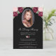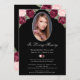 Eleganter Schwarz-Silber-Gedenkservice/Beerdigung von Leben/Beerdigung mit rosa und bordeauxroten Aquarellfarben-Rose und Baby's Atem-Blume vor einem schlichten schwarzen Hintergrund. Personalisieren Sie diese Karte einfach mit einem Foto Ihrer Lieben und der Gedenkfeier/Feier des Lebens/Beerdigung Details.