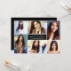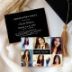 Verkünden Sie Ihren Absolventen stilvoll, indem Sie ihre Lieblings-Senior-Fotos auf diesem Foto Collage Card Design präsentieren. Personalisieren Sie die Formulierung auf der Rückseite der Karte, um Familie und Freunde zu einer Abschlussfeier einladen, um den Anlass zu feiern. Die schwarze Hintergrundfarbe kann an die Farben der Schule oder des Fotos angepasst werden.