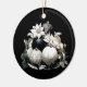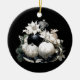 Elegantes, schwarz-beige Elfenbeinweihnachtsstil mit schwarz-Elfenbeinschmuck, Dekoration, Elfenbeinküsten, Kiefernästen und einem schwarzen Satin-Bogen, mit Ihrer personalisierten Textnachricht auf der Rückseite des Ornaments.