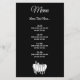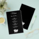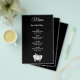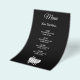 Ein eleganter Flyer mit weißen Schriftzeichen und Deko-Briefen auf Schwarz für Hochzeiten, Feiern oder Restaurants mit einem schlichten Design mit einem Set Silbergeschirr in Grau auf einer hübschen, weißen Tischserviette in Grau und Schwarz. Passen Sie es an, um Schriftart, Hintergrundfarben zu ändern, sogar Ihr Design für später retten.