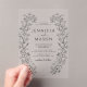 Entspannen Sie mit unseren modernen botanisch-thematischen Acryleinladungen in Ihrem Hochzeitsstudio. Diese raffinierten Designs zeigen einen boho-inspiriert, schwarzen Kranz, der mit wilden Wiesen-Blume geschmückt ist und sich perfekt für stilvolle böhmische Feiern eignet. Fügen Sie Ihrem besonderen Tag eine Touch von natürlicher Eleganz und zeitlosem Charme mit diesen einzigartigen und raffinierten Einladungen hinzu.