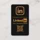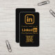Verbessern Sie Ihr professionelles Networking mit dieser eleganten schwarzen und goldenen LinkedIn-Visitenkarte. Diese für den modernen Profi konzipierte Karte verfügt über ein prominentes LinkedIn-Logo und einen scannbaren QR-Code, der Kunden sofort mit Ihrem Profil verbindet. Die Rückseite bietet Platz für Ihr Unternehmenslogo und schafft so eine kohärente und unvergessliche Markenpräsenz. Machen Sie einen bleibenden Eindruck und vereinfachen Sie die Kontaktaufnahme, indem Sie diese stilvolle und funktionale Visitenkarte Ihrem professionellen Arsenal hinzufügen. Es ist der perfekte Weg, um sicherzustellen, dass potenzielle Kunden und Partner Sie online leicht finden und mit Ihnen in Kontakt treten können.