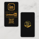 Eleganter schwarzer LinkedIn-QR-Code mit Gold-Verb Visitenkarte