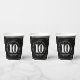 Feiern Sie mit diesen 10-jährigen Service-Papier-Bechern, die auf einem schwarzen Marmorboden mit eleganten Blockschriften versehen sind, die wertvollen Beiträge der Mitarbeiter. Passen Sie Ihre E-Mail-Adresse, Ihren Mitarbeiternamen und Ihre Dienstjahre an. Umkehrung zeigt identisches Design. Design und Kopie © W.H. Sim. Alle Rechte vorbehalten. Weitere Informationen unter zazzle.com/expressionsoccasions