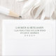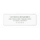Dieses Rücksendeetikett verfügt über ein sauberes, minimalistisches Design mit zentriertem Text auf weißem Hintergrund. Die klassische Serifenschriftart verleiht einen eleganten Touch, während die schwarz-weiße Farbpalette ein zeitloses Aussehen schafft. Perfekt für formelle Anlässe bietet dieses Etikett anpassbare Felder für Namen und Adressen, um ein personalisiertes und dennoch ausgefeiltes Erscheinungsbild zu gewährleisten. Seine einfache Komposition betont Klarheit und Raffinesse und ist somit ideal für Hochzeiten oder andere besondere Ereignisse.