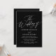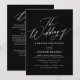 Mit dieser modernen Einladung, die ein elegantes Drehbuch und ein minimalistisches Schwarz-Weiß-Design bietet, laden Sie Freunde und Familie ein, sich an der Freude Ihrer Hochzeit zu beteiligen. Rett auf die Kosten, indem du deine Hochzeitsdetails auf der Rückseite.