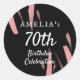 Eleganter Schwarzer Rosa Wasserfarbe 70. Geburtsta Runder Aufkleber