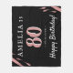 Elegantes Schwarz Pink Watercolor 80. Geburtstag Fleece Blanket. Elegantes Geburtstagsgeschenk mit rosa Wasserfarbenstreifen auf schwarzem Hintergrund. Personalisieren Sie es mit Ihrem Namen, Datum und Alter.