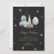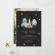 Schwarz-Gold-Foto-Urlaubskarte mit Schneeflocken und Winterszene mit Rentier vorne und Foto hinten. Personalisieren Sie diese elegante Urlaubskarte einfach mit Ihrem Foto und Text.