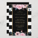 Eleganter Schwarzer Streifen Rosa Blütenhochzeit Einladung