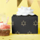 Eleganter schwarz-goldener Star von David Magen David Muster minimalistisch modernes Geschenk Wrapping Paper. Imitate Gold Star of David Muster auf schwarzem Hintergrund. Dieses Papier ist ideal für Hanukkah, Bar mitzvah, Fledermausmitzvah und jüdische Feiertage.
