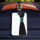 Ein klassisches Kennzeichen für Reisen mit einem schwarzen Band mit einem aquamarinen Herz mit kleinen weißen Punktakzenten.