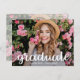 Das Wort "Absolvent" in einem eleganten weißen Skript zusammen mit dem Namen und der Klasse Jahr (oder löschen Sie diese Zeile) SAVE THE DATE Postkarten für Ihre Graduation Party oder Abschluss Zeremonie. Fügen Sie das gleiche oder ein anderes Foto auf der Rückseite. Mehr Designs in unserem Geschäft.