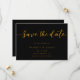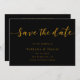 Diese elegante Schwarz-Gold-Hochzeit rette-the-date-Karte ist ideal für eine moderne Hochzeit. Das einfache Design zeichnet sich durch elegante goldene Kalligraphie auf schwarzem Hintergrund aus. Die Karte enthält auch einen QR-Code für die Hochzeitswebsite auf der Rückseite.