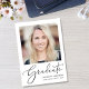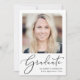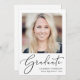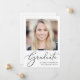 Feiern Sie Ihren Absolvent mit dieser Abschluss-Ankündigung mit "Graduate" in einem eleganten Drehbuch und ihr Foto und ihren Namen, Schule und Klasse Jahr in der einfachen modernen Typografie.