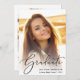 Mit dieser stilvollen Abschluss-Ankündigung kündigen Sie die Erfolge Ihres Abschlusses an. Ihr liebstes Foto füllt die Karte mit "Graduate", oben in einem eleganten Drehbuch geschrieben. Fügen Sie unten ihren Namen, Schule und Jahrgang hinzu. Fügen Sie auf der Rückseite ein zusätzliches Foto und eine personalisierte Nachricht hinzu.