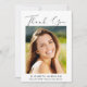 Eleganter Abschluss Dankeschön-Karte mit dem Foto des Absolventen, "danke" in einem stilvollen Drehbuch und ihren Namen, Schule und Klasse Jahr in der einfachen Typografie. Fügen Sie auf der Rückseite ein zusätzliches Foto hinzu, personalisieren Sie eine Danksagung und fügen Sie den Namen des Grads in ein signaturähnliches Skript ein.