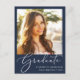 Eleganter Script-Foto Blue Abschluss Ankündigungspostkarte