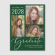 Die Ankündigung des Abschlusses des grünen magnetischen Keepake Fotos mit einer 3-Bildcollage und "Graduate" in einem eleganten, weißen Drehbuch. Fügen Sie den Namen, Schule oder Universität und Klasse Jahr in der modernen weißen Typografie.