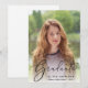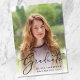 Mit dieser eleganten Ankündigung des Abschlusses kündigen Sie die Leistungen Ihres Absolventen an. Sein oder ihr Lieblingsskript füllt die Foto mit "Graduate", überlagert in einem stilvollen Skript. Geben Sie den Namen, die Schule und das Unterrichtsjahr ein.