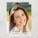 Eleganter Abschluss Dankeschön-Karte mit dem Foto des Absolventen überlagert mit "Dankeschön" in einem stilvollen Drehbuch und ihren Namen, Schule und Klasse Jahr in der einfachen Typografie. Auf der Rückseite fügen Sie ein zusätzliches Foto hinzu, personalisieren Sie eine Danksagung und fügen den Namen des Absolventen in ein signaturähnliches Skript hinzu.