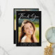 Eleganter schwarzer Abschluss Dankeschön-Karte mit dem Foto des Absolventen, "danke" in einem stilvollen weißen Drehbuch und ihren Namen, Schule und Klasse Jahr in der einfachen weißen Typografie. Fügen Sie auf der Rückseite ein zusätzliches Foto hinzu, personalisieren Sie Ihre Dankeschön-Nachricht und fügen Sie den Namen des Grads in ein signaturähnliches Skript ein.