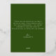 Vielen Dank an alle Ihre Abschluss Gäste mit diesem eleganten vergoldeten Abschluss Dankeschön an Ihre Karte. Diese Karte hat einen grünen Hintergrund mit Goldfolie. Text auf der Vorderseite und auf der Rückseite kann angepasst werden, um Ihre eigene persönliche Nachricht zu erstellen.