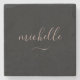 Moderner Untersetzer aus schwarzem und goldenem Stein mit personalisiertem Skriptnamen und Swash.