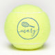 Personalisierte Tennisbälle mit einem blauen individuelle Name oder Text in einem femininen gürtlichen und modernen hübschen Drehbuch-Schriftart und einfaches Tennisschläger-Monogramm mit einem Kreisrahmen. Jeder weibliche Tennisspieler würde den eleganten Look dieser modernen mit Monogramm Übungsbälle schätzen.