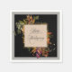 Ein elegantes Design mit klassischem Stil und schlichter Eleganz. Die Mitte des Designs hat einen quadratischen Rahmen in heller Pfirsich mit Happy Thanksgiving-Text in elegantem Schrift-Schnörkel-Typ Gesicht. Eine dünne goldene Grenze umgibt den gerahmten Text mit stark kontrastierenden schwarz-beigen Hintergründen in einem Farbblockstil. Ein hübscher Herbstbouquet mit gemischten Blume in Aquarellfarbe verleiht dem Design die Schönheit der Herbstfarben. Diese Servietten sind in drei Größen erhältlich: Cocktail (hier gezeigt), Mittagessen oder Abendessen mit geprägten oder schlichten Kanten.