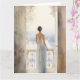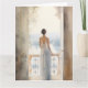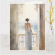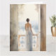 Diese schöne Kunstkarte zeigt eine ruhige Aquarellszene einer jungen Frau in einem langen, weißen Kleid, stehend auf einem Balkon und Blick auf den fernen See. Der sanfte Aquarellstil spiegelt die friedliche und kontemplative Stimmung perfekt wider. Diese Karte ist ideal, um eine nachdenkliche Notiz, eine Botschaft der Hoffnung oder des Komforts zu senden, oder für jeden, der Kunst schätzt, die Momente ruhiger Schönheit und Reflexion hervorruft.