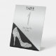 Schönes und elegantes Geburtstagsparty-Podest für Tischnummern, mit funkelnd Sequins stiletto High Heel Schuh auf einem schwarzen dreieckigen Hintergrund mit den Details der Veranstaltung auf einem silbernen Hintergrund. Ein hübsch modisches und anspruchsvolles weibliches Design zum Geburtstag. Alle Text-, Schriftart- und Schriftart-Farben sind anpassbar. Wenn Sie helfen möchten, Ihr Produkt anzupassen oder passende Produkte möchten, kontaktieren Sie mich bitte über meinen Shop und ich werde Ihnen gerne weiterhelfen.