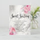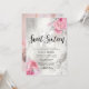 Schöne Sweet 16 Geburtstagsfeier Einladung mit Imitaten silberner Marmor Glitzer Textur, Rose Gold & Silber Rose und eleganten Kalligraphie-Schriftart.