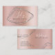 Dieses wunderschöne Make-up-Künstler Visitenkarten-Design bietet Imitate silberne Glitzer Rahmen, Rose gold metallische Textur und eleganten kalligraphischen Schriftart.