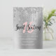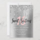 Eleganter silberner Glitzer Tropfen 16 . Geburtsta Einladung