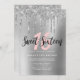 Das moderne Einladungs-Design besticht durch die silberne Tropfsteinstruktur des Glitzer und den eleganten Kalligraphie-Schriftart.