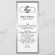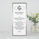 Langes und dünnes Hochzeitstabellenmenü erfolgt im Weiß, mit einem silbernen Tonrahmen um den äußeren und Vintagen schauenden schwarzen StrudelTextbereich, an der Spitze. Personifizieren Sie den ganzen Text zum Anzug Ihr Hochzeits-Empfangsmenü. Reizender Zusatz zu Ihrem Hochzeits-Empfang.