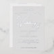 Diese raffinierte Silber-Folie Hochzeitseinladung ist ideal für eine zeitlose und elegante Feier. Das Design präsentiert zarte Wirbel und anmutige Schnörkel, schön ergänzt durch exquisite handgeschriebene Silberfolien-Typografie.